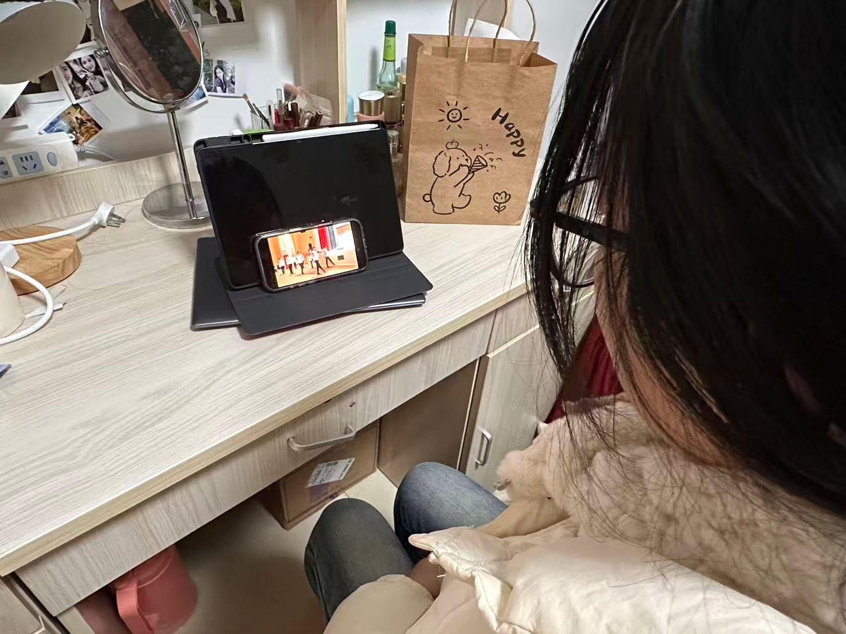 随着直播信号接通,学院教室、办公室、学生宿舍内,师生们准时守候在屏幕前。直播活动中,教育部领导领诵宪法部分条款,现场及通过网络连接的全国师生代表同步跟读。整齐洪亮的诵读声通过网络传递,让屏幕前的管工院师生也沉浸于庄严的仪式感中,深刻感受宪法的神圣与威严。在学院的集中观看点,师生代表神情专注,跟随直播进程,认真聆听领导讲话,用心体会宪法精神。许多师生在个人办公位或宿舍中,也自发调整时间,通过电脑、平板、手机等设备接入直播,确保学习教育覆盖到位。