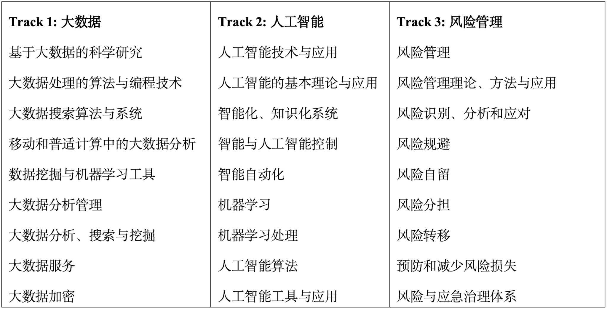 组委会诚挚邀请与大数据、人工智能、风险管理相关的广泛领域的学者踊跃投稿、积极参会交流。我们鼓励感兴趣的作者提交以前未发表的文章,其中包括但不限于以下内容: