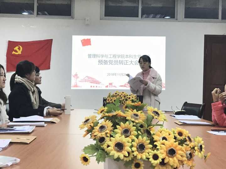 2018年11月29下午16时50分,管理科学与工程学院本科生党支部在德济楼507会议室,召开“不忘初心,砥砺前行” 党支部主题学习日暨预备党员转正党支部大会。会议由支部书记郑媛媛同志主持,本科生支部全体党员及研究生支部党员何胜男和尹星参会。