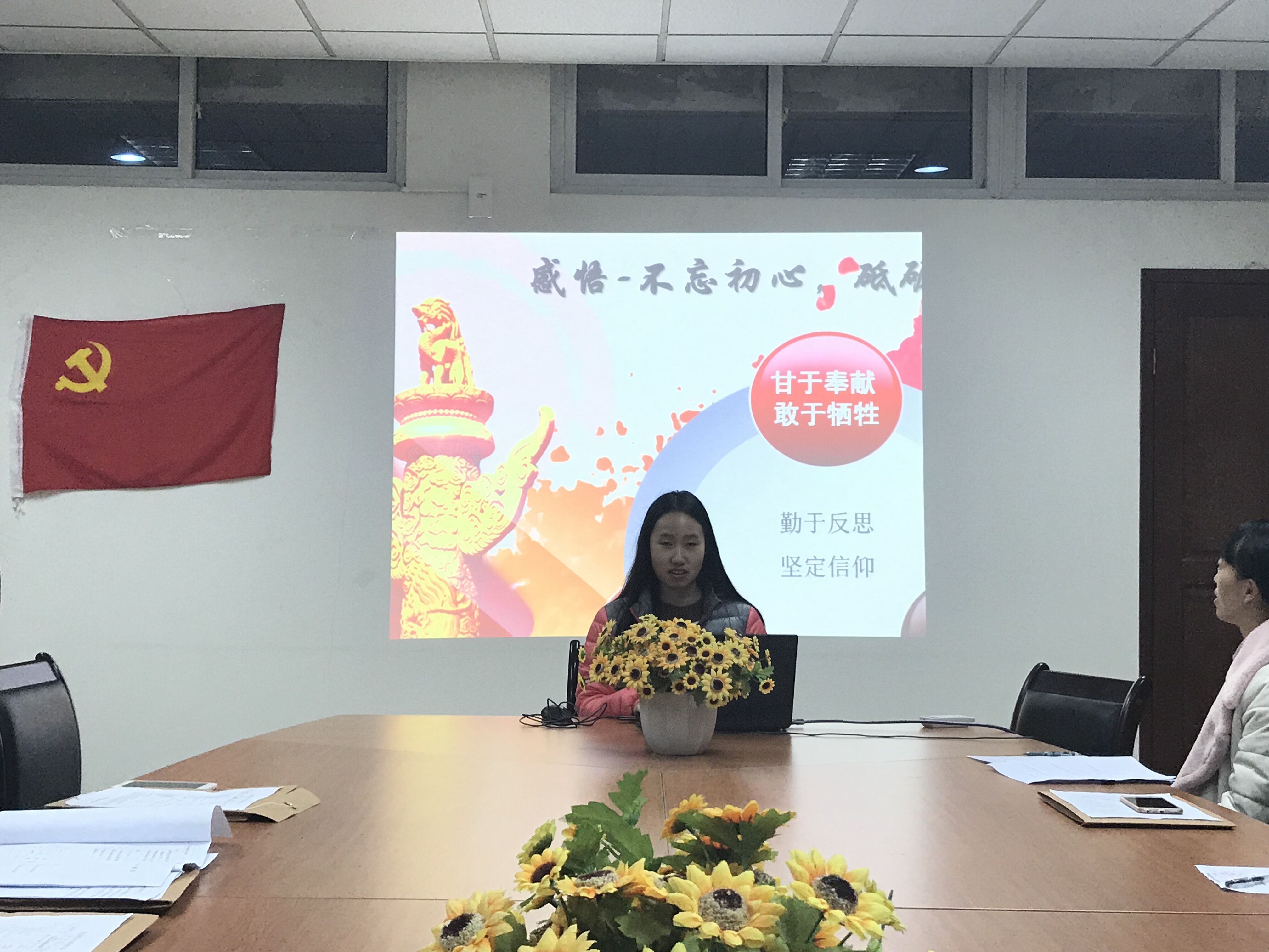 会议开始,全体与会党员共同观看了历史文献纪录片《信仰》,学习了优秀共产党员徐川的《我为什么加入中国共产党?》优秀材料,并邀请与会人员发表看法,自由交流,杨帆说作为一名党员要坚定共产主义理想信念,爱党为党,不忘初心、牢记使命,无私奉献,吃苦在前,享乐在后,全心全意为同学服务,为党和国家的事业积极工作。随后,唐婉莹、杨帆分享了个人入党一年来的心路历程,唐婉莹说自成为预备党员以来,在面对选择和思想矛盾的时候,考虑更多的是集体和同学,党性意识进一步增强,对自己的要求更加严格,为同学和集体服务的意识更加自觉,会一直以优秀党员为榜样,发挥先锋模范作用。