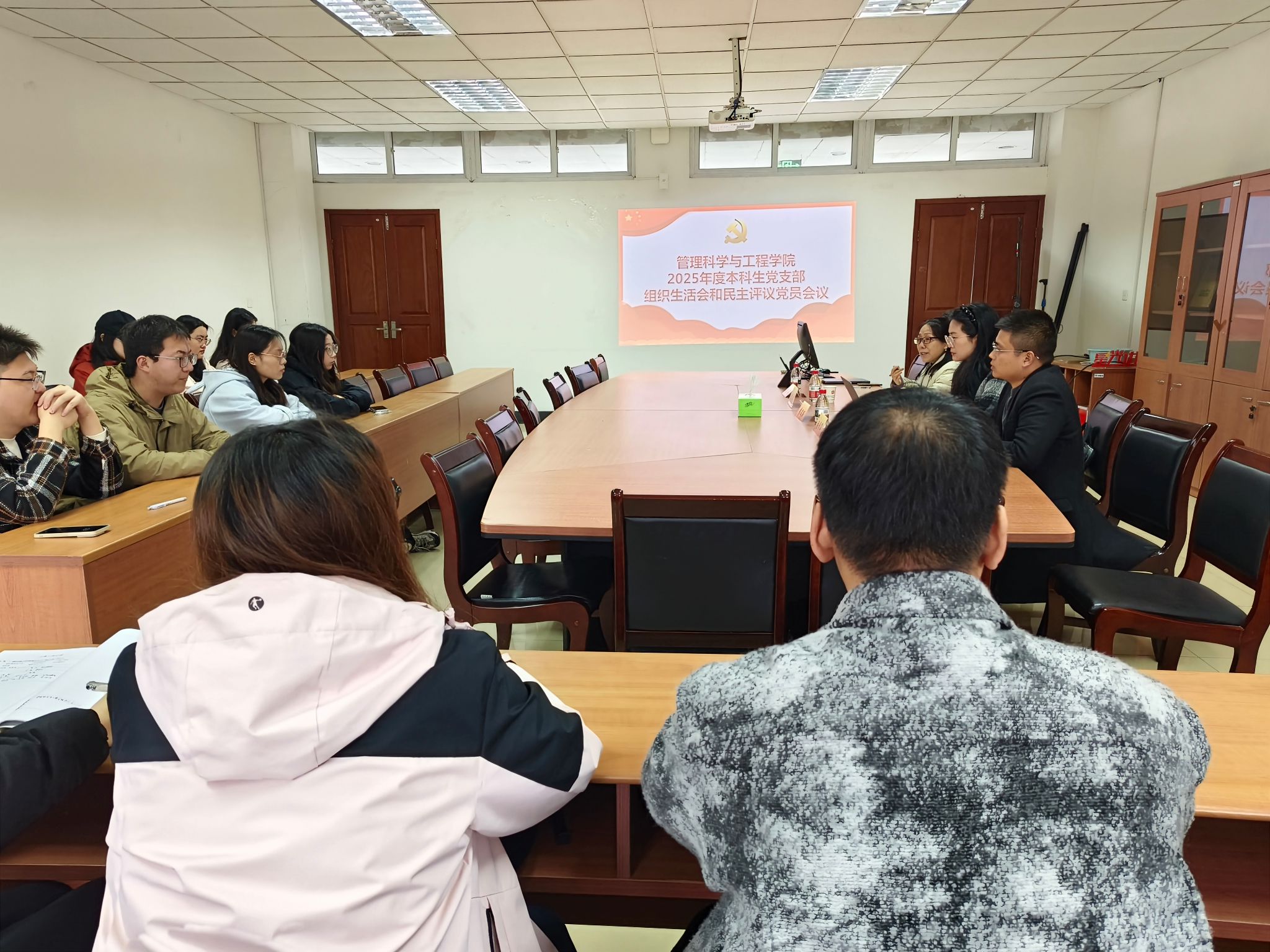 3月18日上午,为深入学习领会“十五五”时期经济社会发展的指导思想和原则,进一步加强支部建设,锤炼党员党性,管理科学与工程学院本科生党支部在德济楼507召开2025年度组织生活会及民主评议党员活动。支部全体成员参加本次活动,活动共分为四项议程,李文丽老师主持会议。