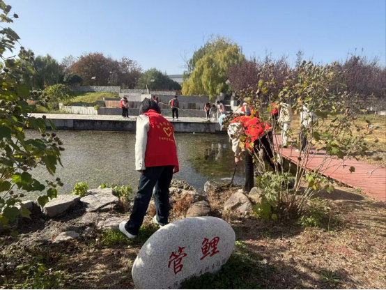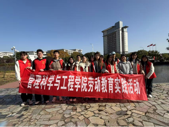 11月28日中午,管理科学与工程学院分团委组织学生志愿者,在“管鲤池”周边开展劳动教育实践活动。学院党委书记金立林和教职工代表参与活动。